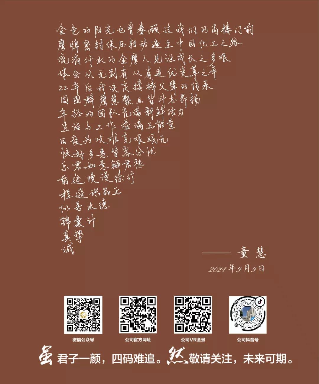沖鋒的號(hào)角再次吹響,我們又一次出發(fā)向前。未來,我們要立足長遠(yuǎn),把握當(dāng)前,堅(jiān)定信心,我們將以“有幸金鷹、無悔金鷹”的情懷,以“功成必定有我”的使命擔(dān)當(dāng),只爭朝夕,不負(fù)韶華,共同續(xù)寫金鷹下一個(gè)二十年的理想與榮光!