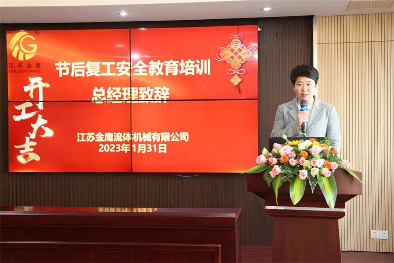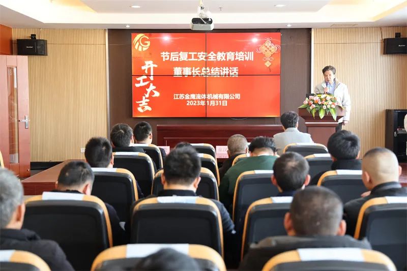 在會議上總經理作復工動員致辭,童總經理代表公司向在過去一年辛苦付出的金鷹人送去新年的祝福,并強調了快速全面復工的重要性、迫切性、責任性,保證人到崗、心在崗,馬上行動,身心一致地投入各項工作中。